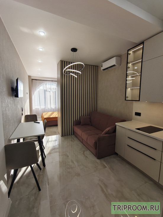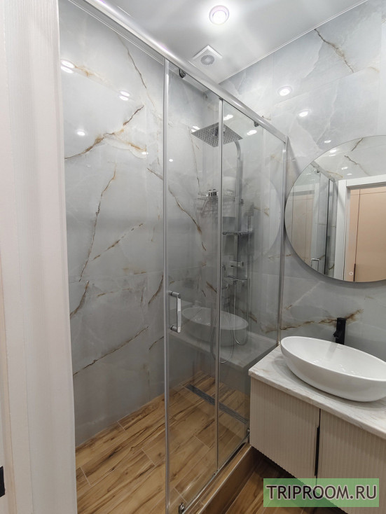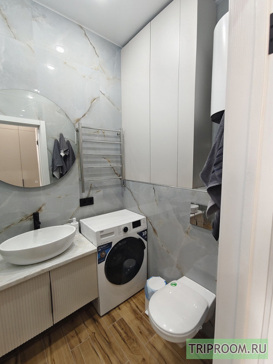 Панорамные арочные окна (южная сторона), тюль, шторы, инверторная сплит-система зима/лето, телевизор смарт, интернет, холодильник с морозильной камерой, микроволновая печь, чайник, индукционная плита, гладильная доска, утюг, сушилка для белья, посуда, столовые приборы, постельные принадлежности, вытяжка (санузел + кухонная зона), душевая кабина, фен для волос, бойлер, плитка керамогранит, инсталляция с подвесным унитазом, вместительная стиральная машина автомат на 6 кг., полотенца, полотенцесушитель, ванные принадлежности, проходные выключатели, полная освещённость.